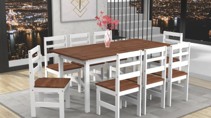 $15.890 JUEGO DE COMEDOR 8 SILLAS, MADERA MACIZA MEXICANA COLOR– Nevado o Cera MEDIDAS: MESA– 1,80cm De Largo– 80cm De…