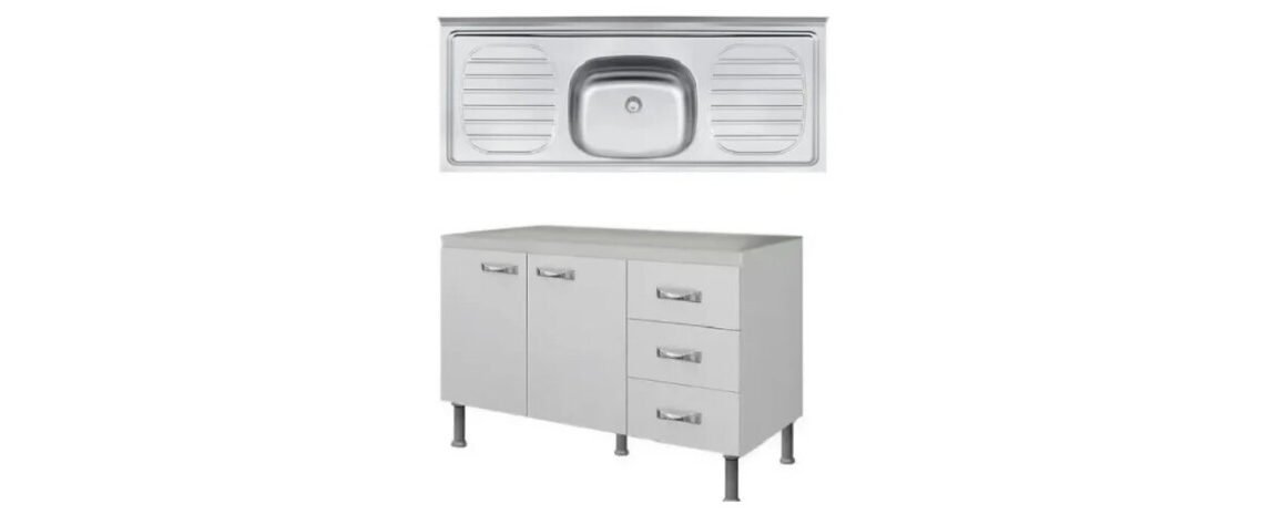 – Bajo mesada con 3 CAJONES de excelente calidad con pileta en acero inoxidable TRAMONTINA y válvula