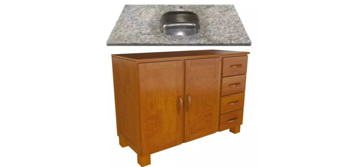 Bajo mesada en madera de excelente calidad con rieles metalicos + Mesada en granito gris con bacha al la izquierda