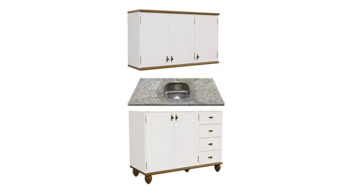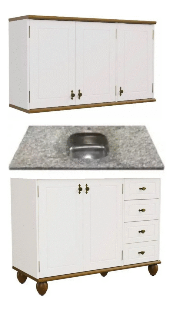 Bajo Mesada Cocina Madera + Aéreo + Mesada Granito Bacha al medio Joy