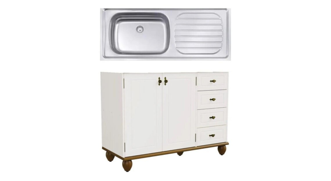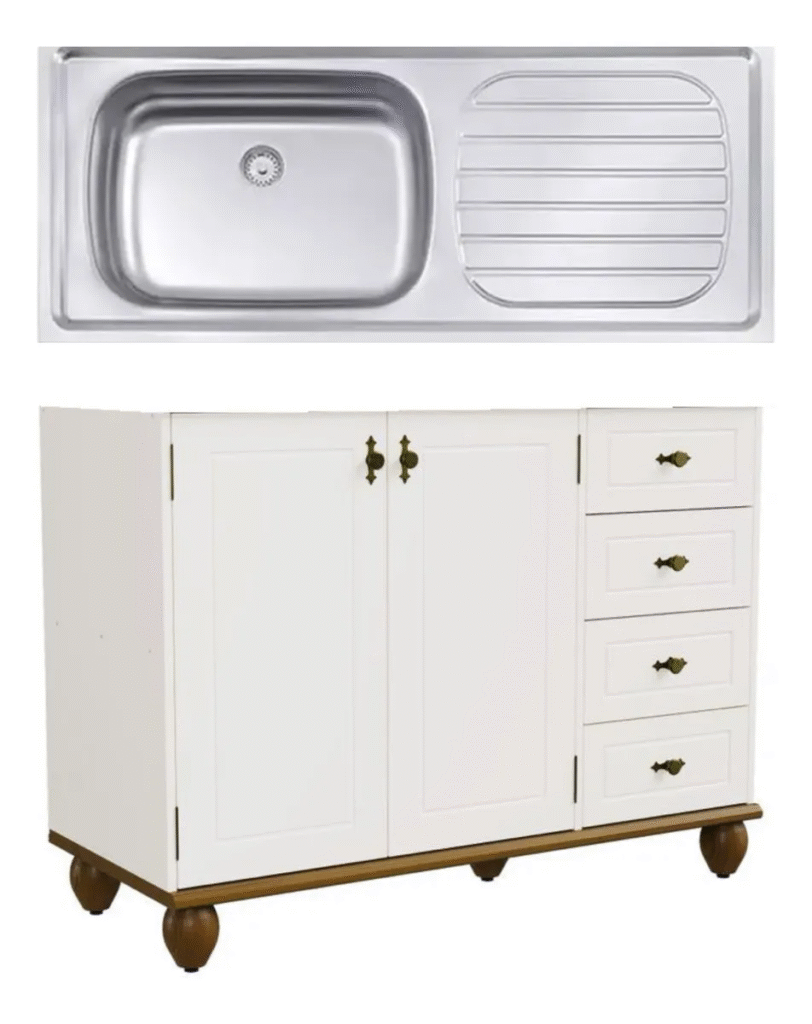 HERMOSO BAJO MESADA DE COCINA 1.20 JOY EN MADERA + MESADA EN ACERO CON BACHA A LA IZQUIERDA