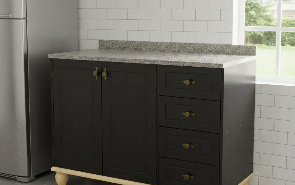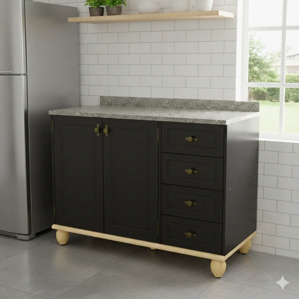 Bajo Mesada De Cocina Negro + Tapa En Granito Gris – Joy