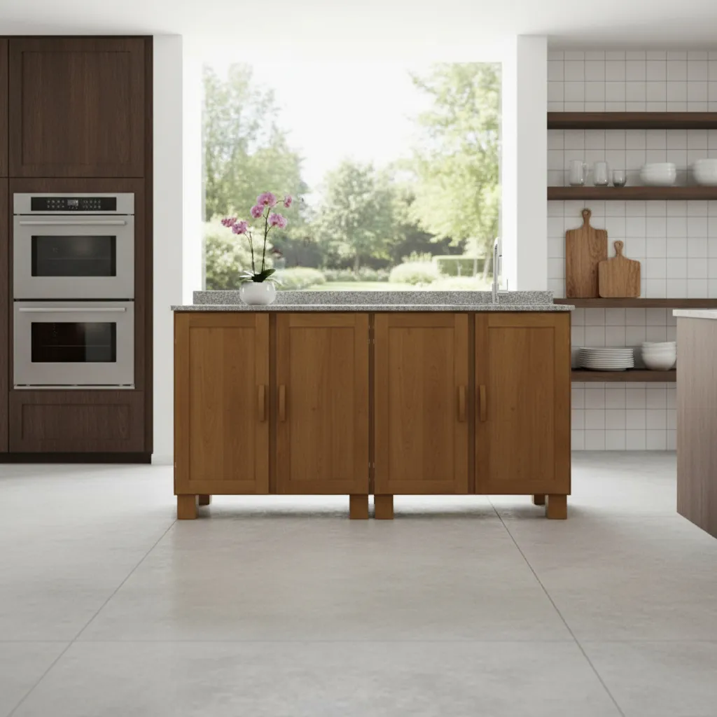 Bajo Mesada Madera 1,60 + Mesada Granito Con Zocalo