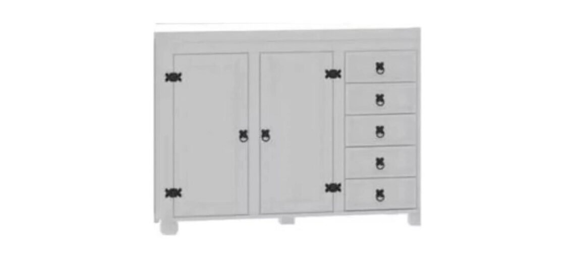 BAJO MESADA 2 PUERTAS 5 CAJONES EN MADERA COLOR NEVADO LINEA MEXICANA PREMIUM NUEVA PARTIDA CON 5 CAJONES!