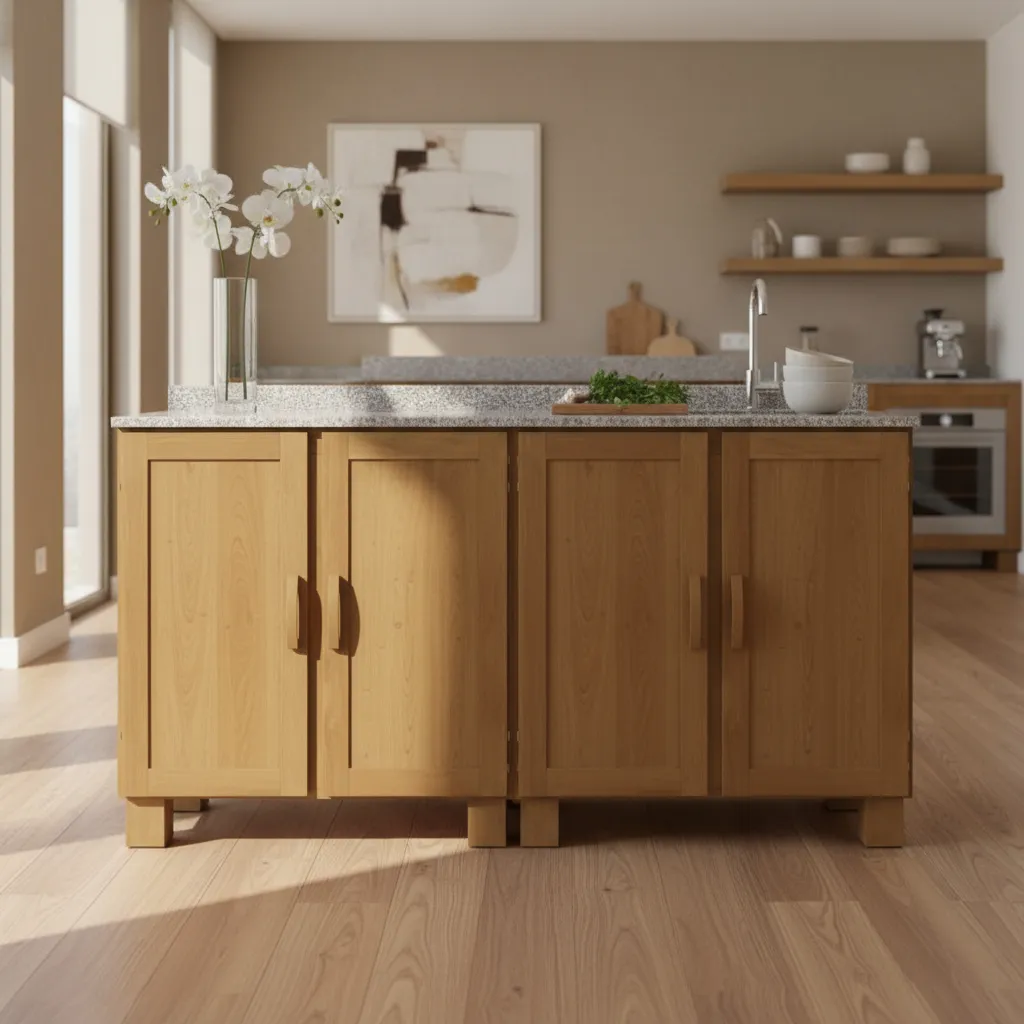 Bajo mesada 1,60 m en madera de excelente calidad Linea Casual con granito en color gris y zocalo .. Con o sin bacha de acero inoxidable .