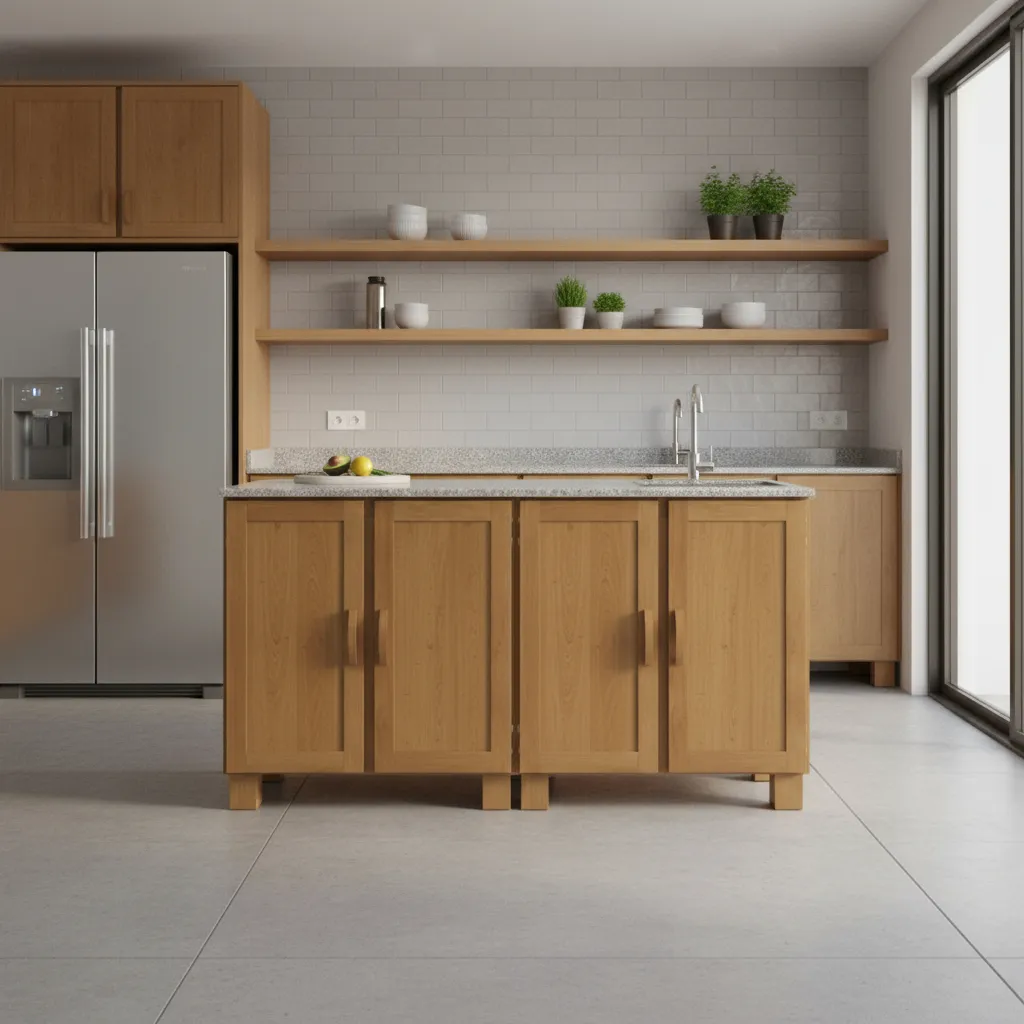 Bajo Mesada1,60 + Mesada Tapa Granito Gris Sin Zócalo Cocina Cedro