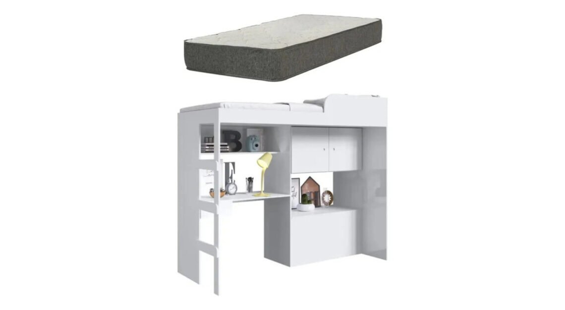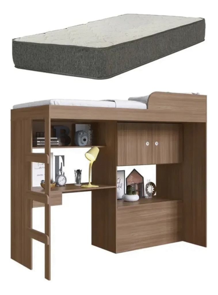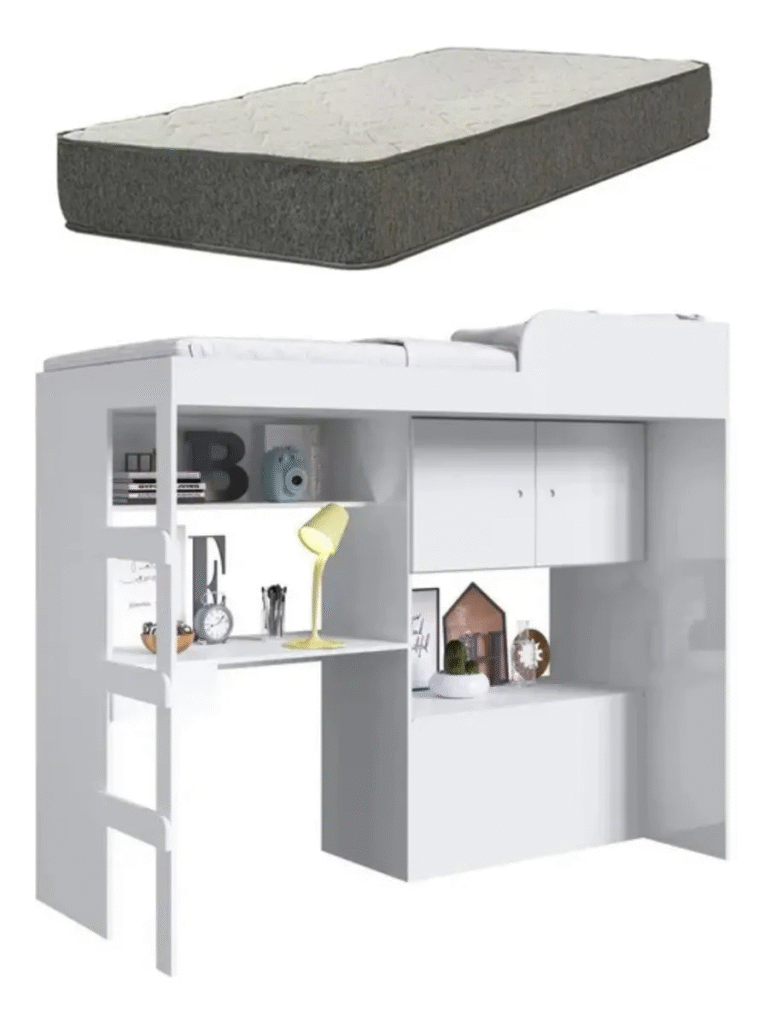 Cama Repisa Multifunción Alta – Escritorio + Colchón Robusta