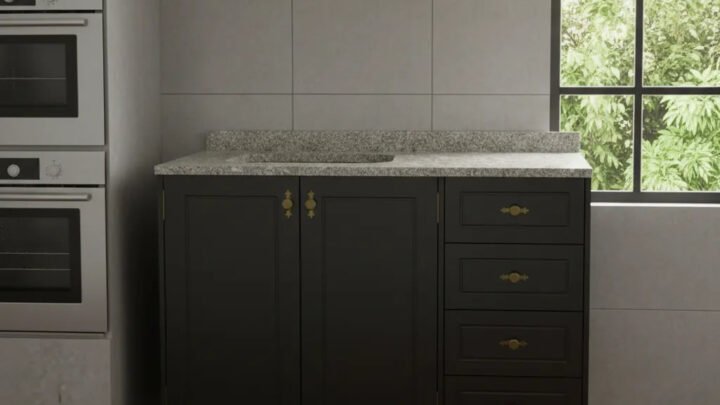 $18.480 HERMOSO BAJO MESADA DE COCINA 1.20 JOY EN MADERA + MESADA EN GRANITO GRIS CON BACHA A LA IZQUIERDA…