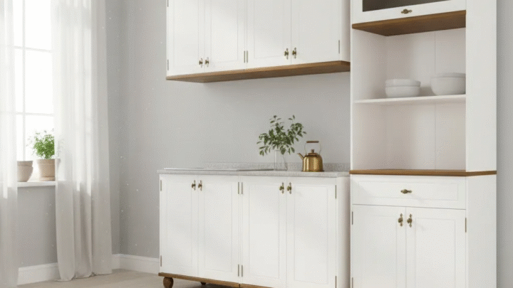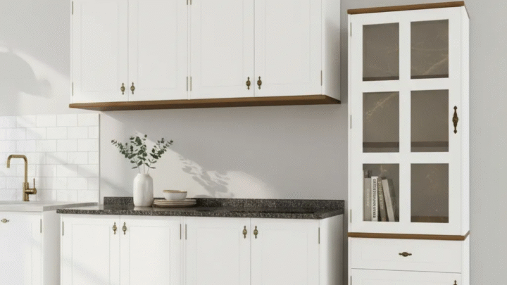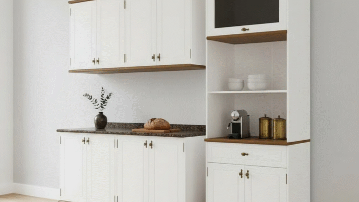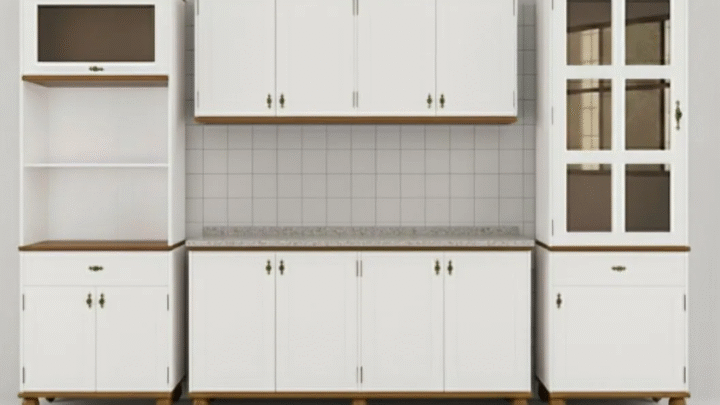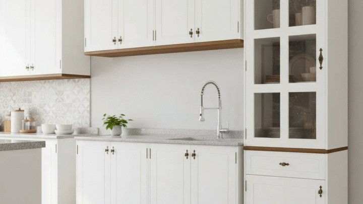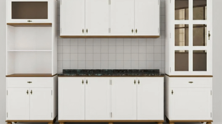 Cocina Bajo Mesada Granito Gris Con Zócalo Aéreo Torre – Nuez /off White