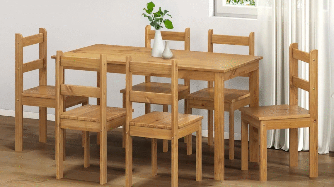 Juego De Comedor En Madera 6 Sillas – Comedor – Kapan Verniz Nogal Liso