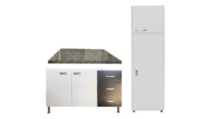 $11.560 MUY LINDO BAJO MESADA CON 3 CAJONES Y 2 PUERTAS + TAPA DE GRANITO GRIS + PANELEIRO – Color…