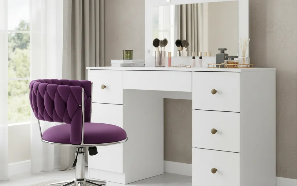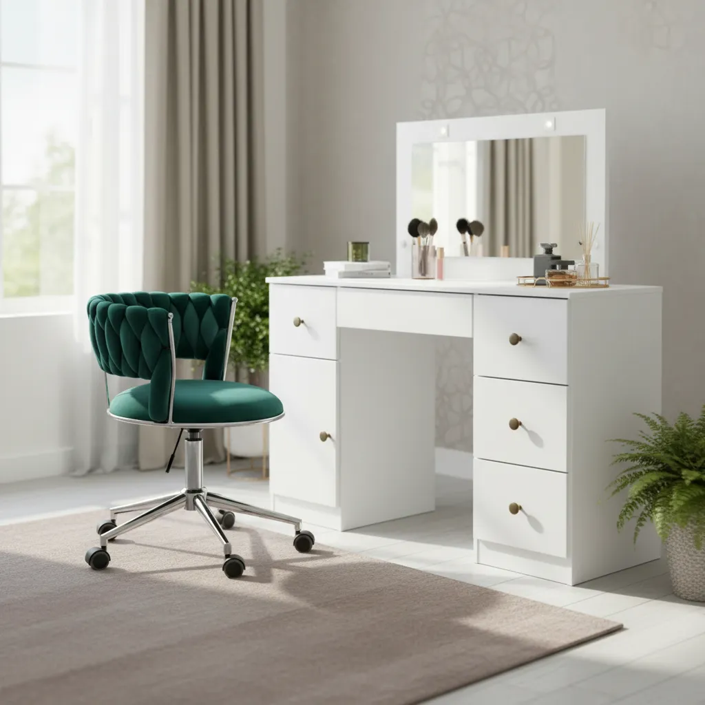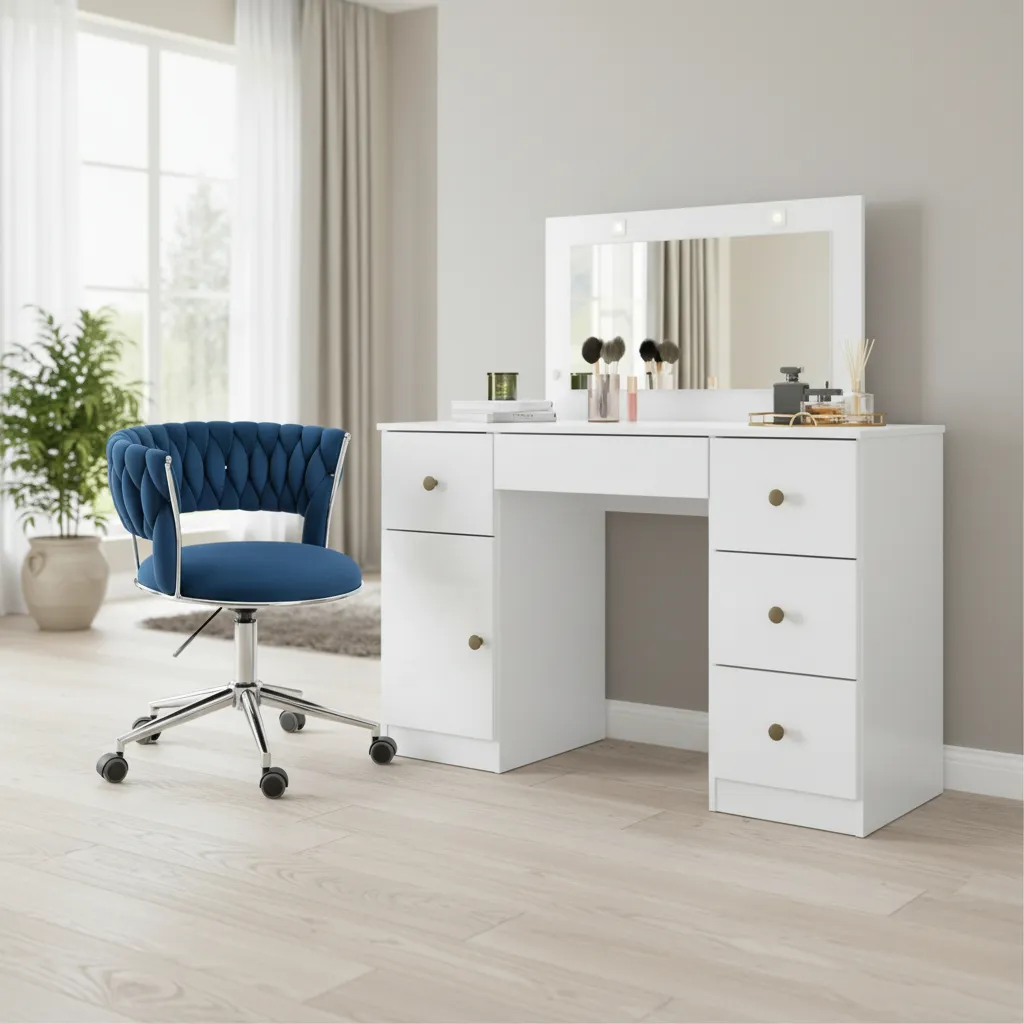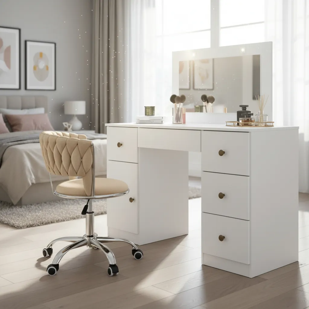 Tocador Maquillados Con Espejo y Luces + Silla Con Ruedas